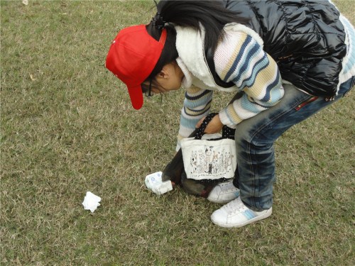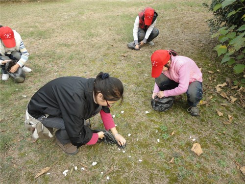 下午两点,志愿者们准时达到学子广场,青协干事为其分配了工作。由于学子广场面积较大,志愿者四人一组,人手一个垃圾袋,便开始活动。本次活动的主要任务是将学子广场以及周边草坪上的果皮纸屑清理干净,并提醒人们保持广场的卫生。在偌大的广场上,志愿者们戴着鲜红的帽子,顶着寒风,俯身捡着地上的垃圾,成了一道道独特靓丽的风景线。尽管广场范围广、面积大,但志愿者们仍不放过任何一个角落,有序分工、团结合作。