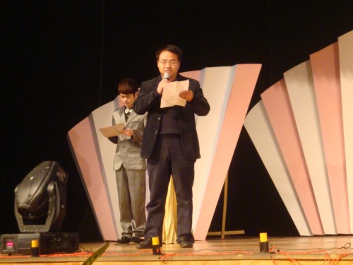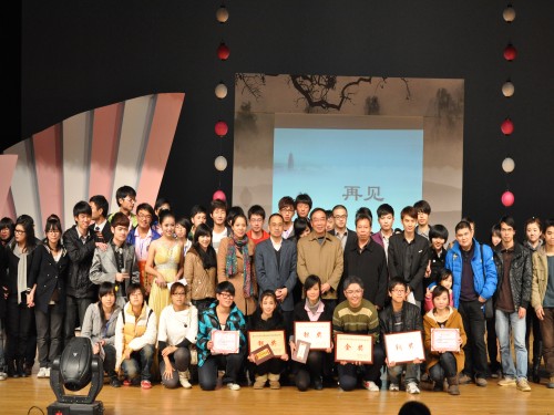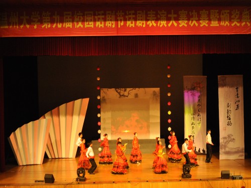 在由bat365在线中国官网登录入口艺术团带来的舞蹈《西班牙之火》中,本次大赛拉开了帷幕。首先,丁治民老师在一片掌声中致开幕辞。随后,比赛正式开始,由农历剧社带来的《人质》和《雷雨》、以及由建筑与土木工程学院带来的《装在套子里的公寓》无不精彩纷呈,高潮迭起,搏得台下阵阵掌声。紧接着,大赛组委会颁出了本次大赛的话剧表演大赛优秀奖、话剧潜力之星及最佳组织奖,由校团书记杨立淮老师及bat365在线中国官网登录入口学生科副科长曾蓓蕾老师颁奖。接下来上演的是bat365在线中国官网登录入口带来的古典爱情悲剧《绝恋》和《霸王别姬》,以及教师教育学院叔同话剧社带来的《沦陷》。其后,由主持人宣布了话剧节LOGO设计大赛及原创剧本编写大赛的获奖名单,并由校团委曾国仕和计融老师为获奖者颁奖。三位bat365在线中国官网登录入口校园十佳歌手为在场观众倾情献唱。大赛评委周乔龙老师和严路明老师先后对本次话剧节进行了点评并予以高度肯定。最后,在所有人关注的目光中,bat365在线中国官网登录入口党总支副书记骆锤炼老师宣布了大赛最佳男女主角、男女配角及最佳导演的名单并为其颁奖。农历剧社的《雷雨》傲然折桂,bat365在线中国官网登录入口10广告本的作品《霸王别姬》和教师教育学院的作品《沦陷》获得银奖,其余三个话剧获得铜奖,由bat365在线中国官网登录入口党总支书记周剑平老师为获奖剧组颁奖,比赛至此圆满结束。