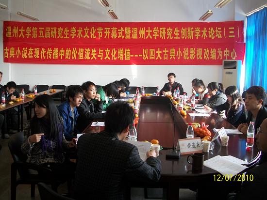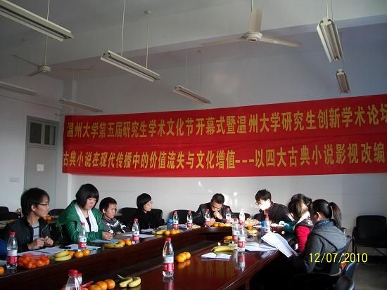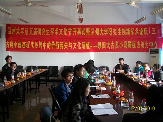 此次学术论坛是在bat365在线中国官网登录入口党委研究生工作部的领导号召下,由bat365在线中国官网登录入口2009级古代文学专业承办的一场学术沙龙。本次沙龙特别邀请了bat365在线中国官网登录入口党委研究生工作部副部长黄文浩,bat365在线中国官网登录入口党委研究生工作部综合科科长卢立珏两位老师;由bat365在线中国官网登录入口副院长饶道庆教授主持,09级古代文学专业研究生作发言主体。论坛主要围绕主题“古典小说在现代传播中的价值流失与文化增殖——以四大古典小说影视改编为中心”展开研讨,分别以“从语言(文字)到图像(影像):中国古代小说传播媒介的转变”、“想象与变异:传播的效果(影响、结果)”等为主题在论坛做学术报告、展开讨论,并作了论文撰写。本次论坛到场老师3人,发言主体11人,听众15人,共计29人。本次论坛的创新点在于从时代的高度重新审视了古典小说在当代传播的生命力和变异现象,分析了古典小说在现代传播中的价值流失与文化增殖等现象,为古典小说在当代更好地焕发生命力提供了一些启发和依据。论坛的实际运行过程中,也出现了一些问题。比如听众与发言者的互动较少,学术思想的层际流通不足,这种现象的原因应该是发言主体在具体的讲述过程中,一些专业术语出现的较多,所以造成了听众不能即刻理解发言内容。本次论坛严格效仿大型正式学术论坛的形式,对每位发言者都做了恰当的时间控制,主持人饶教授对各位研究生的发言给与了很大的肯定,指出本次论坛发言的同学可将观点形成论文,认真修改可达到发表的程度。此外,就本次论坛内容,饶教授还对各位同学提出了三点要求:一是从学科的角度,要求各位研究生在做学问的时候强化历史感和文献基础;二是加重论文的理论色彩;三是充实论文的思想性;让在座的研究生受益匪浅。