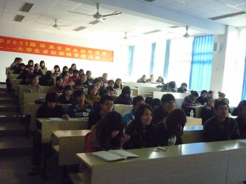 12月9日下午14时,bat365在线中国官网登录入口2011届毕业生就业指导讲座之大学生求职策略专题讲座在北校人文楼201教室举行。本次讲座由bat365在线中国官网登录入口就业工作处就业指导科科长陈坤党老师主讲,bat365官网毕业班及部分大三同学共同参与。