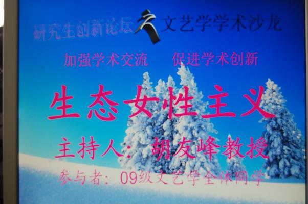 11月22日,在bat365在线中国官网登录入口北校区行政楼317会议室,bat365在线中国官网登录入口2009级文艺学的同学们举行了一个学术沙龙。这次沙龙以《生态女性主义》为话题,特别邀请胡友峰副教授莅临指导,主要由09级同学发言讨论。