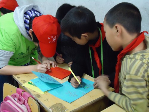 丁岙小学是一所民工子弟学校,有许多留守儿童。延着感恩节的话题,bat365在线中国官网登录入口志愿者决定做关于感恩的活动--教小朋友们为父母做贺卡,送祝福。中午时分,各学院志愿者们与C区集合,一同前往丁岙。去丁岙的一路上可谓艰辛,由于路途较远,交通状况较差,志愿者们经过较长时间颠簸才到达目的地。但一到学校,看到可爱的乖巧的孩子们,志愿者们便疲乏全无,立刻开展起活动。活动伊始,志愿者们先做好了准备工作:贴海报、分组、发卡纸等,一切都有序的进行。在教小朋友做贺卡的过程中,志愿者们耐心而热情,边与小朋友聊,边协助小朋友们做,可谓其乐融融、相亲相爱。小朋友们之间也能互相帮助,传借工具、帮剪纸片、出主意......各位小朋友似乎都想把送给父母的贺卡做成世界上最漂亮的。真的是用心在制作,相信孩子父母看到会很感动的。