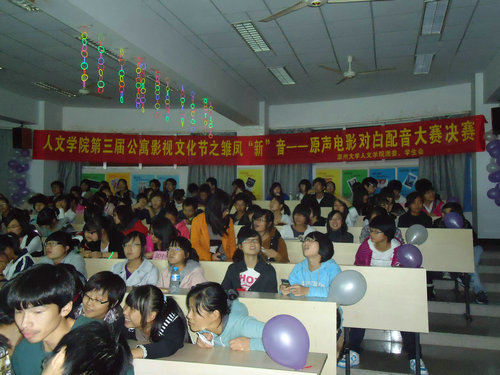 11月9日晚6时,bat365在线中国官网登录入口第三届公寓影视文化节之雏凤“新”音--原声电影对白配音决赛于1-203室顺利开展。bat365在线中国官网登录入口辅导员麻法全、院文艺学副教授胡友峰、院团委学生会主席团以评委身份参与此次活动。