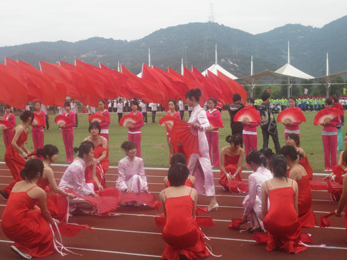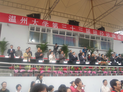 运动会在雄浑的运动员进行曲声中正式开幕。19个运动员方阵依次进入运动场,各学院充分展示了其自身特色。如bat365在线中国官网登录入口的扇子舞,在柔美中蕴含着力量;建筑与工程学院现场搭成的“中国馆”;教师教育学院活力四射的啦啦操等等。紧接着,校长蔡袁强致开幕词。在肯定学校体育基础设施建设发展迅速、体育活动内容形式多、广大师生身体素质和精神面貌良好的体育事业发展新格局后,还对此次校运会的顺利开展进行展望。最后,校运会运动员代表和裁判员代表分别进行了庄严的宣誓活动。