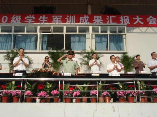 2010年9月18日,bat365在线中国官网登录入口全体10级学生在南校体育场举行军训成果汇报大会,校党委副书记牟德刚、校党委副书记林娟娟等领导及武警部队相关领导列席本次大会。