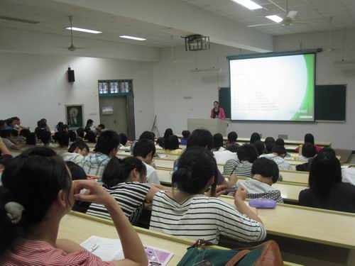 在此次“走进世博会”专题讲座上,曾老师主要围绕“人类文明的盛会”、“中国与世博”、“上海世博会”三大内容进行展开陈述。并着重强调了世博会的重要作用——是进步的体现、创新的代表及世界各国家组织交流的舞台。丰富精彩的内容吸引了同学们的注意力,令人受益匪浅。