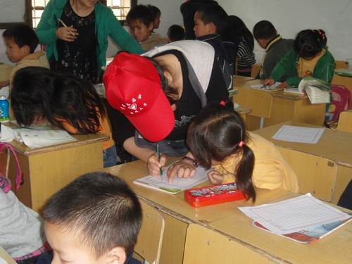 下午两点,志愿者们到达丁岙小学并开始分班和准备材料工作。六组志愿者分别在六个年级展开了各具特色的书法培训。志愿者们围绕着“青海挺住,玉树不哭,死者安息,生者坚强”这个主题缅怀与纪念。在课堂上,志愿者们教小朋友 “青海、玉树,地震、坚强”的不同写法,还将 “玉树地震”的信息、感人故事融入其中,孩子们个个认真专注。最后,小朋友们将自己的作品与祝福一起交给了志愿者,并希望志愿者能将这份祈祷传递给玉树的小朋友们。活动在美好的祝福和温暖的气氛中获得圆满成功。