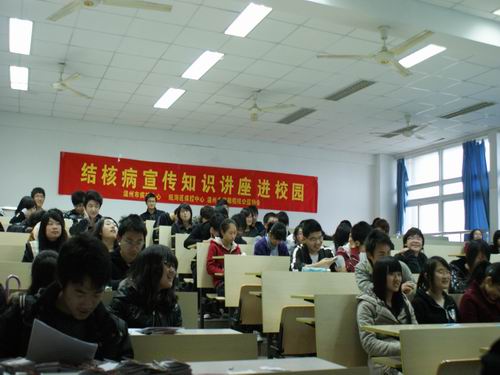 本次讲座分三个部分:赵女士对结核病知识的讲解,有奖问答环节以及最后同学们的提问答疑环节。赵女士首先对结核病的概念及其病发症状进行解释,让同学们对结核病有了初步认识,而后赵女士又陆续讲解结核病的各种传播途径和危害,纠正同学们对结核病的错误认识,并使同学们深刻认识到防治结核病的重要性。赵女士的精彩演说,获得了同学们的阵阵掌声。在接下来的有奖问答环节,同学们踊跃发言,可见讲座效果显著。而在后来的咨询时间,同学们纷纷提出心中疑问,赵女士一一耐心详细解答,更是使用防治动作来帮助理解,将讲座气氛推向高潮。