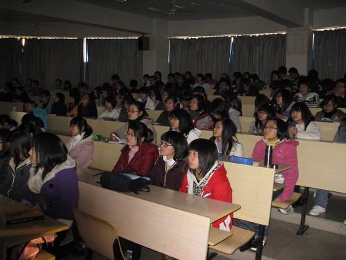 15:15,魏书记准时开始上课,教室里已经座无虚席。魏书记今天主要讲的是新中国成立60年以来神州大地上所发生的翻天覆地的变化,并就60年来中国十大成就展开了详细的讲述,介绍了中国经济腾飞、农业发展、民生改善等巨大成就。魏书记旁征博引,深入浅出,生动地在我们面前展开了一幅中国腾飞的历史画卷。同学们认真听记,获益匪浅。之后,同学们又观看了有关近代中国历史发展进程的专题片,在魏书记的带领下一起回顾了中国在历史潮流中沉浮斗争、不断探索开创的历程。4点45分,整堂课顺利结束。