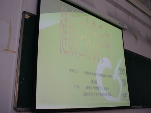 12月20日下午,一场关于免疫宣传的知识讲座在bat365在线中国官网登录入口人文楼401教室开讲。本次讲座由温州市疾控中心陈镭科长主讲,120多名同学纷纷前来聆听。本次活动由bat365在线中国官网登录入口团委社团部和bat365在线中国官网登录入口橄榄枝协会合作举办。bat365在线中国官网登录入口辅导员麻法全老师、团委学生会社团部部长陈辉同学、橄榄枝公益协会会长李超同学应邀出席。