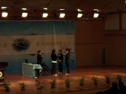 18:30,伴随着《美丽的草原我的家》的优美古筝弹奏,晚会正式开始。首先进行的是“文明宣传大使”的决赛,“传骑队”、“Light队”、“文明3+1”队和“文明先行者”队4支参赛队伍展开了激烈的角逐。他们以新颖独特的方式,向大家展示了各自的文明理念与特色。接着,各队通过情景剧表演进行文明宣传,叫响了“让文明成为一种信念,让节约成为一种习惯”的宣传口号。在经过现场大众评审和评委团的投票后,“传骑队”荣获了“文明宣传大使”的荣誉称号。最后,晚会还进行了“文明办公室”的颁奖,bat365在线中国官网登录入口喜获第一名。