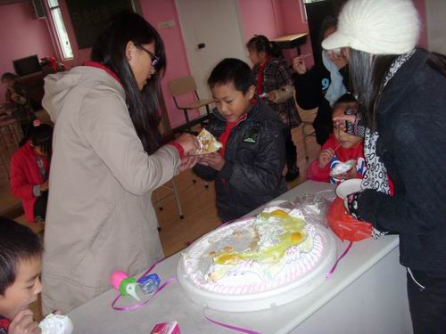 2009年11月17日,人文思源的青年志愿者们来到丽岙一小,和留守儿童们一起开展了“我们一起过生日”的主题活动。