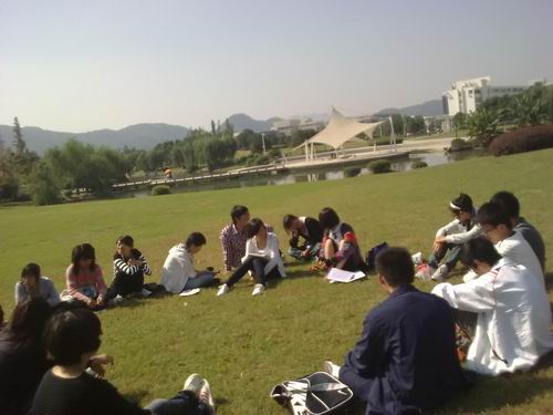 金秋十月,丹桂飘香,栖风文学社的第一次笔会在飒爽秋风下拉开了帷幕。爱好文学又散发着青春活力的我们聚到了一起,在洁净的纸上描绘我们共同的话题。阳光斑驳,秋风阵阵,我们围坐在青青草坪上畅谈对生活的感悟,对作品的感想。一篇篇佳作美文被传阅、被诵读,掌声,欢呼声此起彼伏。现场洋溢着浓浓的文学氛围。