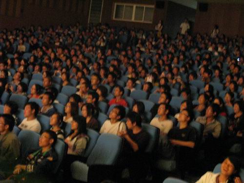 之后,在《春天的故事》的优美旋律伴随下,我们走进了改革开放的时代,演艺厅的气氛也随着激昂的歌声高涨起来。当舞台上再现了“小平您好”的场景时,全场气氛顿时达到了高潮。随后的诗朗诵《零八记忆》将观众带入了难忘的2008,铿锵的诗句勾勒出了我们中华民族在新世纪征程上意气风发、豪情万丈的伟大形象;《北京欢迎你》的优美旋律表达了我们海纳百川的博大情怀。舞台表演结束之后,观众们共同欣赏了影片《拉贝日记》,重温历史,让我们获益颇深。整场活动持续到21:30才圆满落幕。