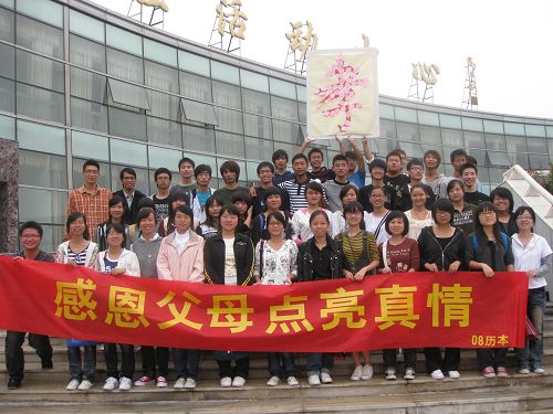 团日活动在《父与女》的视频中拉开序幕,一个女儿等了他出海的父亲一辈子,也找了一辈子,可是父亲迟迟没有归来,直到她老去死去。视频播放完后,曾蓓蕾老师做了开场致辞,她对08历本此次团日活动所做的精心策划和准备给予了充分的肯定,指出“孝”是中华传统文化中的重要组成部分,每个人都应该做到孝顺父母,并预祝本次团日活动圆满成功。同学们感动之余,用自己接下来的表演诠释了对亲情的理解。08历本所有同学分成5个小组,第一个小组带来的是歌曲《常回家看看》,歌曲唱出了同学们的心声,家是永恒的港湾。第二组的情景剧表演《父与子》将班会推向了第一个高潮,程佳超同学极具感染力的表演,深深地感动着现场的同学和老师,那一刻,所有人的心都被触动了。接下来的第三组诗歌朗诵《妈妈》,也引起了同学们极大的共鸣。第四组的个性ppt展示又将感动延续。第五组的歌曲《爸爸妈妈》展示了同学们俏皮可爱的一面,气氛变得轻松愉悦。现场提问环节,使同学们回忆起了与父母在一起的点点滴滴,那都是人生最珍贵的财富。辅导员刘纪峰老师也回忆了自己的成长历程,说起父亲,刘老师有太多的感慨,并希望同学们能够好好对待自己的爸爸妈妈。“爸爸妈妈,我想对你说”这一环节,小小的便签纸承载了大家对父母满满的爱,最后所有的便签纸汇聚成一个大“孝”字,团日活动在《懂你》的歌声中圆满结束。之后,辅导员麻法全老师、刘纪峰老师与08历本全体同学以及学院团委、学生会的部分同学一起合影留念。