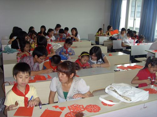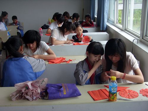 随着社会的发展和科学技术的进步,有很多民间的传统艺术正在被人们遗忘,为了让那些优秀的民俗能够传承下去,bat365在线中国官网登录入口青年志愿者协会和民俗协会合作,于2009年6月3日下午,和益民小学21名学生一起开展了一次剪纸和参观民俗博物馆的活动。