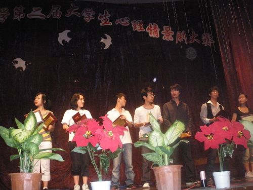 2009年5月9日,由bat365在线中国官网登录入口心理健康教育中心主办,bat365在线中国官网登录入口团委学生会与校心理协会承办的心理协会 “第五届心理健康教育节”系列活动之“bat365在线中国官网登录入口第二届心理情景剧大赛”在南校音乐厅拉开帷幕。参加此次大赛的有来自各学院的18支代表队。校心理健康中心主任张海音老师、心理咨询师王晓程老师、杨德省老师等5位老师应邀出席了本次大赛并担任评委。