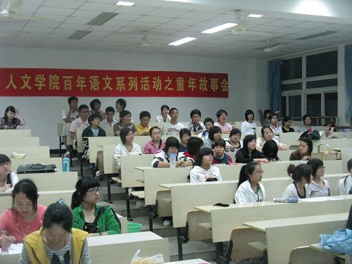 4月16日晚6:30,伴随着串串童趣的声音和阵阵的欢笑声,bat365在线中国官网登录入口第七届“百年语文”系列活动之“童年故事会”在人文楼1-301准时开始。bat365在线中国官网登录入口辅导员麻法全老师、音乐学院郑颖老师、商学院白岩虎老师和bat365在线中国官网登录入口06届的卢咪红同学担任本次活动的评委。