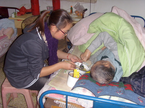 早上8点,六名志愿者就来到南白象菜场购买包饺子的材料,随后来到了老人院。洗菜、切菜、拌馅,虽然大家对此都不是很有经验,但都忙得不亦乐乎。中午十二点半,所有的志愿者都准时来到敬老院。大家共分成了八组,一切准备就绪,就开始动手包饺子了。有些人不是很会包,但大家都很用心地边学边包,在将近两个小时的时间里,大家共包了两千多只饺子。然后,志愿者们和老人聊天、下象棋。午后的阳光洒在院子里,呈现出一幅老少同乐的画面。之后大家为十几位老人拍了照片,老人们那微笑的脸定格成美好的瞬间。晚饭时间,志愿者们为老人们端饺子,有些老人行动不便,志愿者们就细心地喂老人吃,那一声声“谢谢”让志愿者十分感动。将近五点,最后一批志愿者才依依不舍地离开了老人院,挥手告别间,满是留恋。