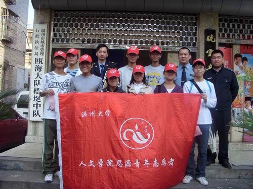 2008年11月12日,bat365在线中国官网登录入口“思源”青年志愿者协会与温州市城市管理行政执法局欧海分局梧田中队合作开展了一次对梧田街道摊贩的管理宣传活动。