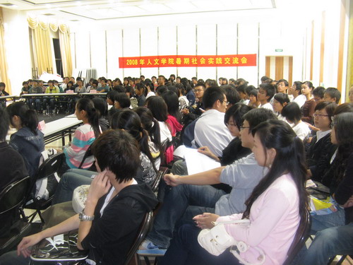 11月3日晚6:30,2008bat365在线中国官网登录入口暑期社会实践交流会在大学生活动中心多功能厅拉开了帷幕。被布置成椭圆形的会场内,新老生们欢聚一堂,大家本着一颗学习与交流的心,踊跃地参与到整个活动中。