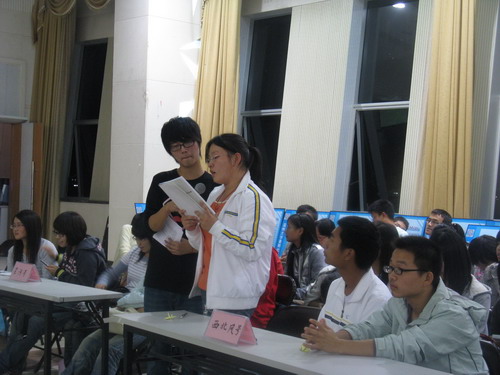 学生会办公室吴剑波和素拓部梅秀娟同学担任了本次交流会的主持。活动现场还请到了经验丰富、实力雄厚的军师队和智囊团,包括bat365在线中国官网登录入口辅导员曾蓓蕾、麻发全老师、学生会团副朱晓雨、主席朱淑君、副主席范辛祥同学以及各部分校级优秀实践队队长和学生会各部部长。麻法全老师首先介绍了一些优秀实践队的情况,让大家初步了解了今年的暑期社会实践成绩。简单的热身活动后便正式进入了活动环节,第一环节的"犹抱琵琶半遮面"中,同学们根据实践队的照片猜想实践活动的内容;接下来的"大珠小珠落玉盘"中,新生们充分发挥创新能力、开拓思维,提出了诸多新鲜的方案,如食品安全、非物质遗产保护、环温州市自行车旅行等。军师队和智囊团成员针对新生的设计方案从可行性、内容、教育意义等多方面进行了点评,既肯定了同学们想法的合理之处,又提出了一些较为中肯的意见,使方案更具可行性。在"曲终收拨当心画"的环节中,实践队队长们通过PPT展示向新生们介绍了各自队伍的实践活动,让新生对暑期社会实践有了更为全面、深刻的认识。