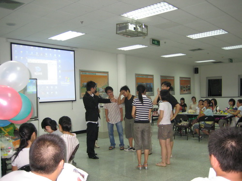 为了增进两个班同学间的交流,所有同学被随机地分成六组。在音乐声中,主持人登台,晚会正式开始。第一个节目便是08历本表演的京剧,令在座的同学为之一振。07历本的同学也不甘示弱,陈志燕同学的越剧表演也令在场的同学们赞叹不已。之后是一连续的歌曲表演,大家都沉浸在优美的歌声中。之后开始了各种互动小游戏,在抢凳子的过程中,参赛的同学都把目光集中在凳子中,个个都是跃跃欲试的样子,大家参与的热情都十分高涨。之后连续的互动游戏,使晚会的气氛达到了高潮,不时有一阵阵的欢笑声。在不知不觉中,晚会接近了尾声,大家在一首《朋友》中结束了这个难忘的夜晚。