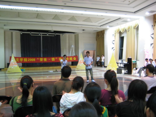2008bat365在线中国官网登录入口“望夜·圆”迎新生晚会暨中秋晚会于9月11日晚在大学生活动中心顺利举行。晚会内容精彩纷呈,吸引了绝大部分新生前来观看,bat365在线中国官网登录入口院长叶世祥老师、党总支副书记魏成春老师、08各班班主任老师以及辅导员李浦豪、曾蓓蕾、麻法全和蔡晓武老师都莅临晚会现场。