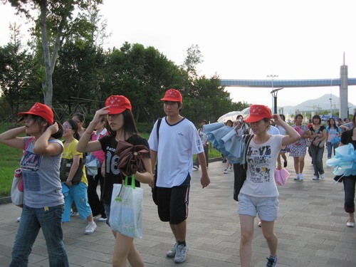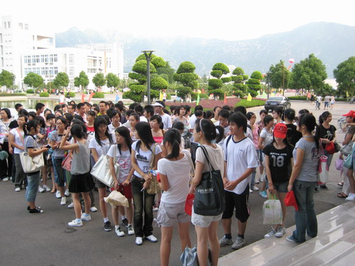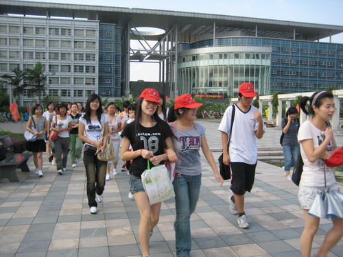 烈日炎炎,但是丝毫没有影响志愿者和同学们的热情。志愿者按照事先安排的分组以及路线带领新生熟悉大学城的环境。北校图书馆、运动场、大学生活动中心、南校音乐厅、行政楼、图书馆以及学子广场等,带着一丝新奇,带着浓浓的渴望,他们的身影遍洒温大。二个小时左右的步行的确有点累,但新生的脸上未出现厌烦,映入眼帘的是他们如火的热情。那种激情让我们看见了温大在新生们心中是一个寻梦的地方。温大校园里的每一幢楼,每一座桥,每一条河,它们蕴含的丰富的文化底蕴,荡涤着新生的灵魂。他们昂首阔步,此时的骄阳正是他们心情的写照。怀着满腔热情,新生们在温大的土地上印下了深深的足迹。