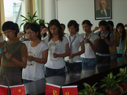 教育大会上,首先举行预备党员入党宣誓,由支部书记曾蓓蕾老师宣读宣誓人名单。庄严的国际歌后,预备党员举右手,面向党旗郑重宣誓,坚决拥护党的领导,随时为党和人民牺牲一切,永不叛党。大会上,魏成春副书记向毕业生党员传达学校关于毕业生党员带头做好文明离校的精神,更是对毕业生党员毕业后继续爱校荣校提出了具体的希望和要求。最后,李浦豪老师向毕业生党员介绍了关于毕业生党员组织关系转接的一些注意事项,并向毕业生党员发起倡议,“让毕业后的第一个月工资的10%变得更有意义”,为人文助学基金添砖加瓦。