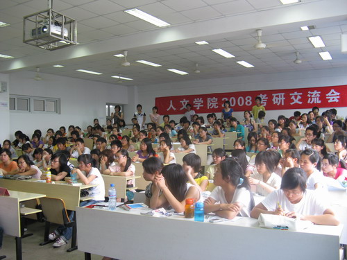 5月28日下午2点, bat365在线中国官网登录入口2008年考研交流会在1-201教室举行。本次交流会邀请了bat365官网四名刚考上复旦大学、浙江大学及武汉大学的研究生同学。bat365官网百余名"考研后备生"参加了此次交流。
