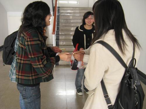 3月7日,bat365在线中国官网登录入口团委学生会成员又在一号楼门口向学生"佳人"们赠送巧克力。巧克力虽小,但情意不淡。小小的巧克力载着bat365在线中国官网登录入口团委学生会对同学满满的祝福。让所有佳人在属于她们自己的节日里,绽放出校园里最美丽的微笑,盛开出校园里最灿烂的鲜花。