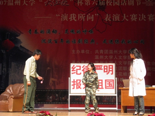 2007年12月27日晚,bat365在线中国官网登录入口“大红花”杯第六届校园话剧节之颁奖晚会在bat365在线中国官网登录入口演艺中心落下帷幕。至此,第六届校园话剧节画上圆满句点。