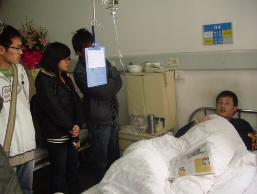 12月15日下午,bat365在线中国官网登录入口团委思源青年志愿者协会的城管志愿者代表,手拿鲜花和水果,在温州市第三医院探望了在执法过程中遭暴力反抗而受伤的城管执法队员黄慧同志。