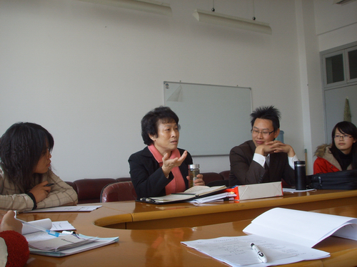座谈会上,陈书记首先发言。她表示,推进学校的学风、教风和校风建设是学校工作的重心,而学风建设更是重中之重,也是学校迎评的一项重要工作。2008年教育部本科教学水平评估是对我校的人才培养质量和本科教学工作的权威评价,是关系学校生存与发展的头等大事。她强调迎评需要全校师生及各岗位工作人员的共同努力,要牢固树立迎评创优,人人有责的思想。作为06中本1班“五个一”的结对老师,她给予同学们恳切忠告,并分析了目前大学生存在的问题。她指出:学习目的性不明确,意志力薄弱,虚荣心强是目前大学生存在的普遍问题,她希望同学们能实事求是,艰苦奋斗,以良好的姿态投入到学习和工作中,为学校的迎评作出自己的贡献。