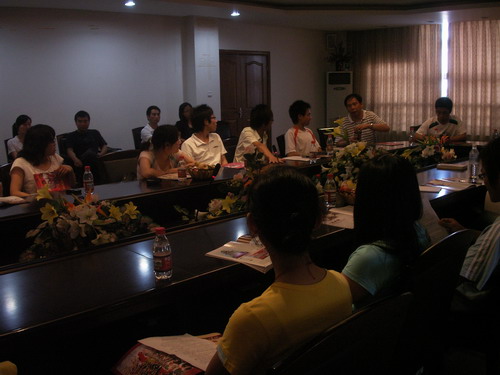 5月30日下午2点,由我校民俗协会举办的“民俗沙龙”活动在北校区行政楼125室举行。温州市民间艺术家协会主席潘一刚老师等一行四人以及校民俗博物馆赖施虬老师出席了此次活动,他们就民俗协会会员和民俗学研究生提出的有关民俗信仰问题一一作了解答。