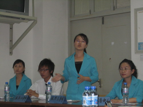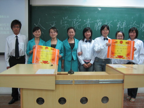 6月1日下午,由bat365在线中国官网登录入口团委学生会主办的“青藤杯”辩论赛决赛在北校区1号楼201教室举行。王峰、曾蓓蕾老师以及谷超豪奖学金得主许棣同学担任了此次评委。决赛辩论的辩题为电脑时代是否会导致人际关系的隔离,06中本4班为正方,反方为05历本。经过激烈争辩,最终由05历本获得本次辩论赛总冠军。
