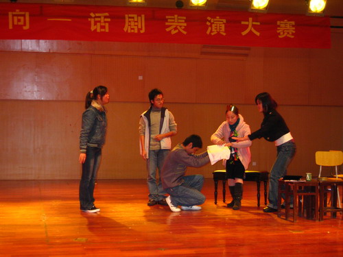 周六上午8点,由bat365在线中国官网登录入口06中本4班带来的《盲点?亮点!》准时为预赛拉开了序幕。令人炫目的舞台灯光,动人心弦的话剧情节,深情投入的演员,无不让观众沉浸其中。至周日下午4点半,教育学院、瓯江学院、商学院、栖风文学社等12个学院、2个社团选送的33个表演剧目全部表演完毕,农历剧社排演的以真情实感而博得全场喝彩的《父与子》以85分的高分成为全场之冠。最后,音乐学院选送的《你的帽子真好看》等12个剧目顺利进入决赛。