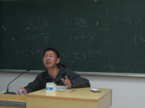 刘老师表示,考研是手段而不是目的,不是唯一的选择,但却是一个很好的选择。他用幽默的语言,轻松的口吻,向在座的同学介绍了考研的一些具体情况,指出外语是考研的重要关卡,还推荐了一些书目,例如《中国人民大学2007硕士研究生入学考试大纲》《硕士研究生非英语专业词汇短语大纲》等。介绍了一些大学(如北大、浙大等大学)的考研情况,使大家对研究生考试不再陌生。