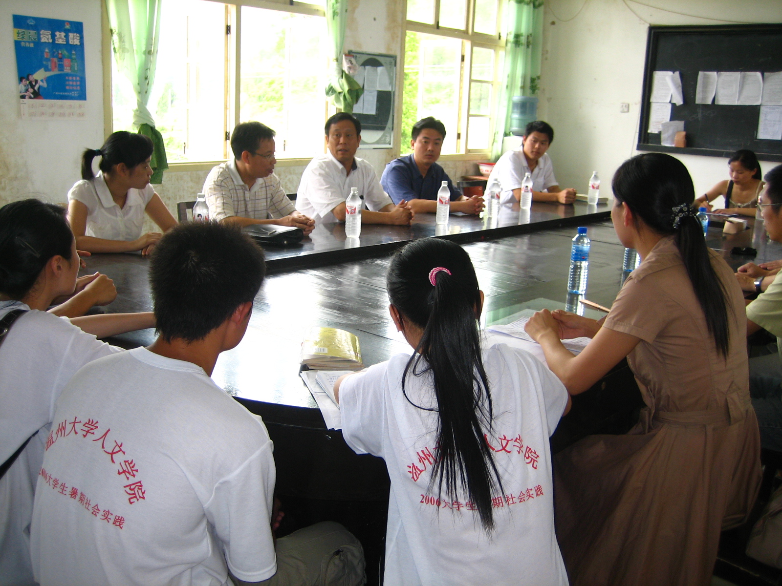 会后,领导们还前往实践队员的住处深入了解了同学们的饮食起居情况,并与同学们进行亲切交谈,此次慰问让实践队员精神大受鼓舞,他们都表示将认真贯彻“服务新农村,传播新文化”的宗旨,努力完成任务,做一名对社会有贡献的新时代大学生。