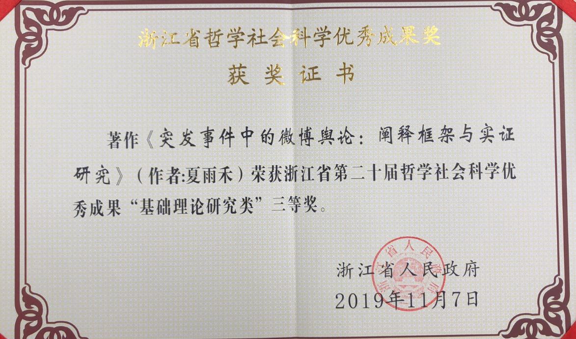 成果名称:突发事件中的微博舆论:阐释框架与实证研究