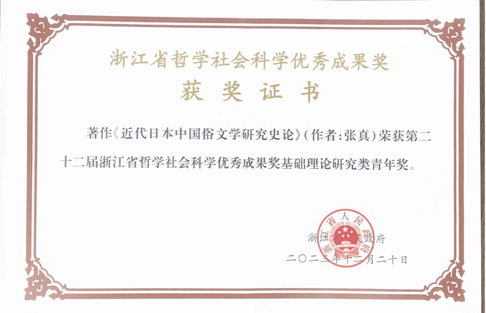 奖励名称:浙江省第二十二届哲学社会科学优秀成果奖