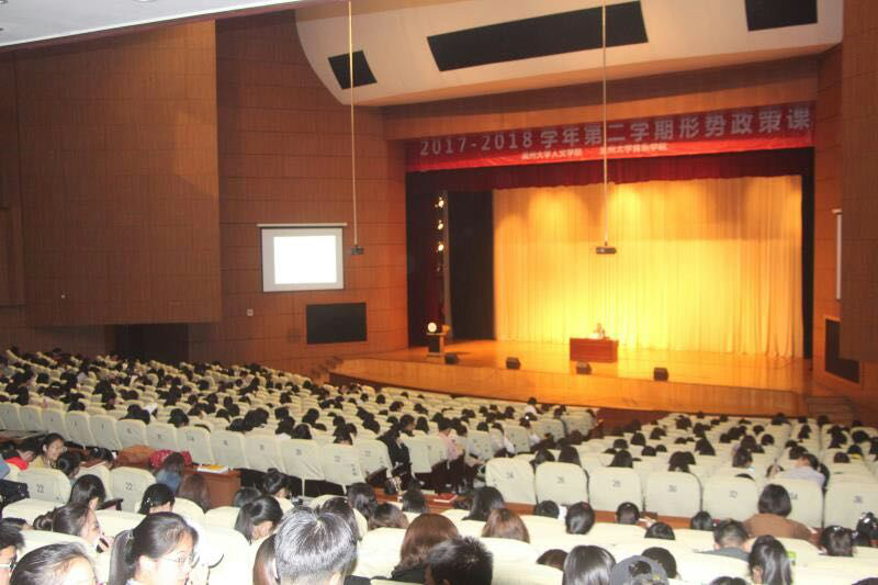2018年4月27日晚,bat365在线中国官网登录入口联合音乐学院举办了本学期的形势政策课。本次课程分为两场,分别为马克思主义学院党委书记王柏民老师主讲的“马克思主义宗教观解读”和教师教育学院党委书记杨立淮老师主讲的“清朗网络的构建”。