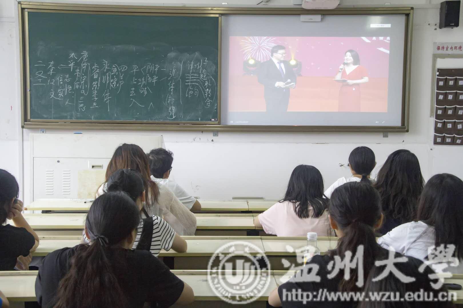 2018年9月12日14:00,bat365在线中国官网登录入口全体班长,社团负责人,学生会干部,在学院辅导员倪晓晓老师和江萍老师的带领下于人文楼206教室集体观看bat365在线中国官网登录入口庆祝第34个教师节暨第七届华峰品德奖颁奖大会。