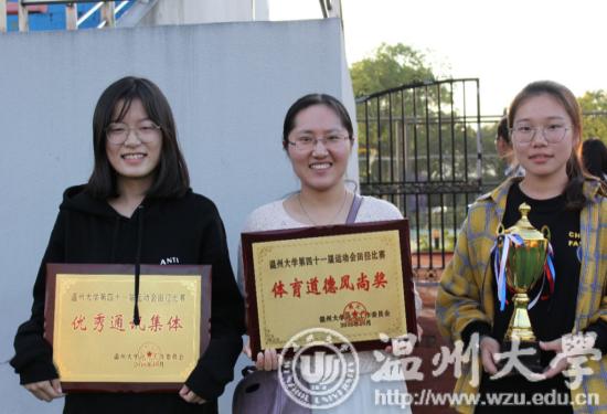 烈日在秋风的轻抚下散发柔暖的光亮,徐徐映照在操场上bat365官网学子隐含期待的面庞上。在各学院有序入场后,裁判员代表宣布了团体总分排名、体育道德风尚奖、优秀组织奖、优秀通讯奖及优秀裁判员名单。值得欣喜的是,bat365官网在此次运动会上荣获学生甲组女子团体总分第七名,体育道德风尚奖。另外,在全院同学的踊跃投稿下,bat365官网还喜获优秀通讯奖。在场的同学们欢呼跳跃,喜不自胜。