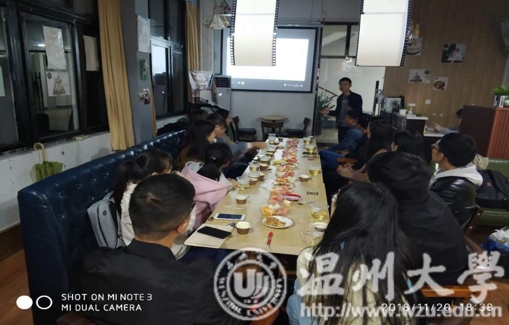2018年11月20日晚,bat365官网“星火·薪传”党员志愿服务中心之国学传播社于“兆文智创”创客空间举办了题为“美味共品尝,文化相与析”的国学沙龙活动。本次活动由bat365官网国学社负责人倪晋玉同学宣讲,bat365官网部分研究生参与。