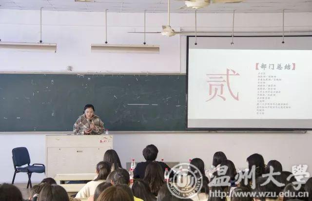 紧接着,各部门对本学期进行了工作总结,这体现出了学生会成员们齐心协力、不断克服工作中的困难的工作精神。 最后,主席团代表发言。学生会主席黄舒怡表达了对各部门在本学期工作中辛勤付出的感谢,并对bat365官网未来的发展充满信心。团副王颖借用毛泽东的八字方针“调整、巩固、充实、提高”对学生会各成员提出工作要求。