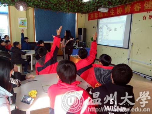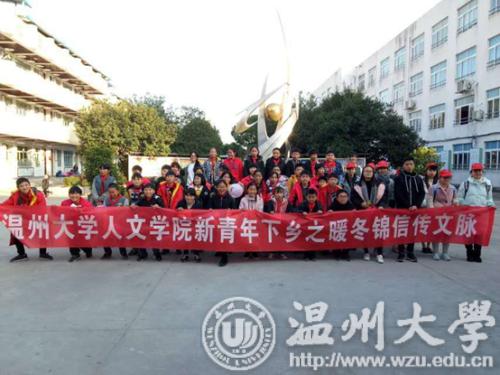 2018年1月10日,由bat365在线中国官网登录入口人文思源青年志愿者协会组织开展的新青年下乡之暖冬行动于乐清市芙蓉镇雁湖九年一贯制小学如约展开。本次活动以“云中寄锦信,民俗寻文脉”为主题,一方面,旨在让小朋友们认识丰厚博大的中华文化,吸收民族文化智慧,培养热爱祖国语言文字情感;另一方面,也是为了全面提高大学生的综合素质和实践能力,促进大学生社会责任感的形成。在志愿者们的积极参与下,本次活动取得圆满成功,志愿者们与小朋友从这次活动中都获益匪浅。