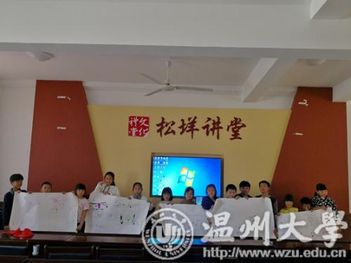 活动开始前,青协部长便向干事介绍了此次活动,干事联系好此次下乡活动的班级负责人,确定下乡人数、参与此次活动的人数及相关流程,并与松垟文化礼堂负责人取得联系,进行讨论,联系小朋友,找好活动场所,确保活动的顺利进行。28日7:00,志愿者们便在车站集合,经过两个半小时的车程后,于9;30到达松垟文化礼堂并正式开展活动。首先,志愿者们先与小朋友们进行熟悉,在户外一起进行了老鹰捉小鸡的游戏,通过游戏制造氛围,经过十几分钟的游戏后,孩子们不再像原先那么拘谨,脸上也绽开了笑容。随后,志愿者们利用ppt向孩子们介绍了牙齿健康的重要性。ppt生动形象地分析了牙齿的结构、不良习惯对牙齿的危害以及在日常生活中如何保护牙齿。孩子们津津有味地听着讲解,并在志愿者提出问题时积极发言解答,现场气氛十分融洽。上午的活动于11:30正式结束,在确定孩子们顺利回家后,志愿者们进行了短暂的午休。下午的活动于13:30正式开始。为了让小朋友更深层次地、发自内心地形成保护牙齿的意识,志愿者们拿出事先准备好的长画幅,开始进行“绘牙齿”活动。志愿者将小朋友们进行分组,每组由一个志愿者带领,帮助孩子们画出自己心目中的牙齿,并在孩子们画完之后邀请他们上台讲述属于自己作品的故事,孩子们的奇思妙想也让志愿者感到惊喜。最后,由小朋友分享今天所得的知识与自己的感想大家围坐在一起,一边分享零食一边交流体会。15;00,志愿者与小朋友合影留念并派发小礼品。在确保小朋友安全回家后,志愿者进行现场整理与打扫,此次活动圆满结束。