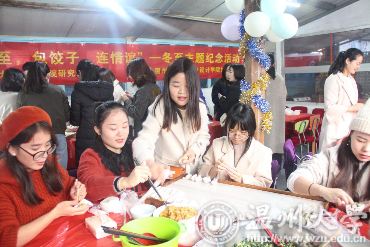 为了传承中华传统习俗,丰富研究生的校园生活,bat365官网研究生会于2018年12月22日在云平农家乐举办了以“庆冬至,包饺子,连情谊”为主题的纪念活动。此次活动由bat365官网研究生会主办,美术学院研究生会协办,共有八十余位来自各个学院的研究生参加。其中包括bat365官网研究生会成员、第一、第二党支部成员、美术学院研究生会成员以及慕名而来的意大利、捷克留学生。